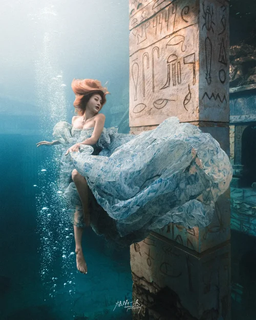 飄逸的服裝在水下拍攝是熱門項目,課程中會教如何在水下駕馭您的飄逸服裝,不論是女孩的漂亮洋裝、禮服,還是男性的漢服、功夫服、飛魚服,都能讓您展示出服裝的氣勢,除此之外,還會學習水下實用的肢體動作,對想拍攝水下婚紗的素人也是超實用的唷!